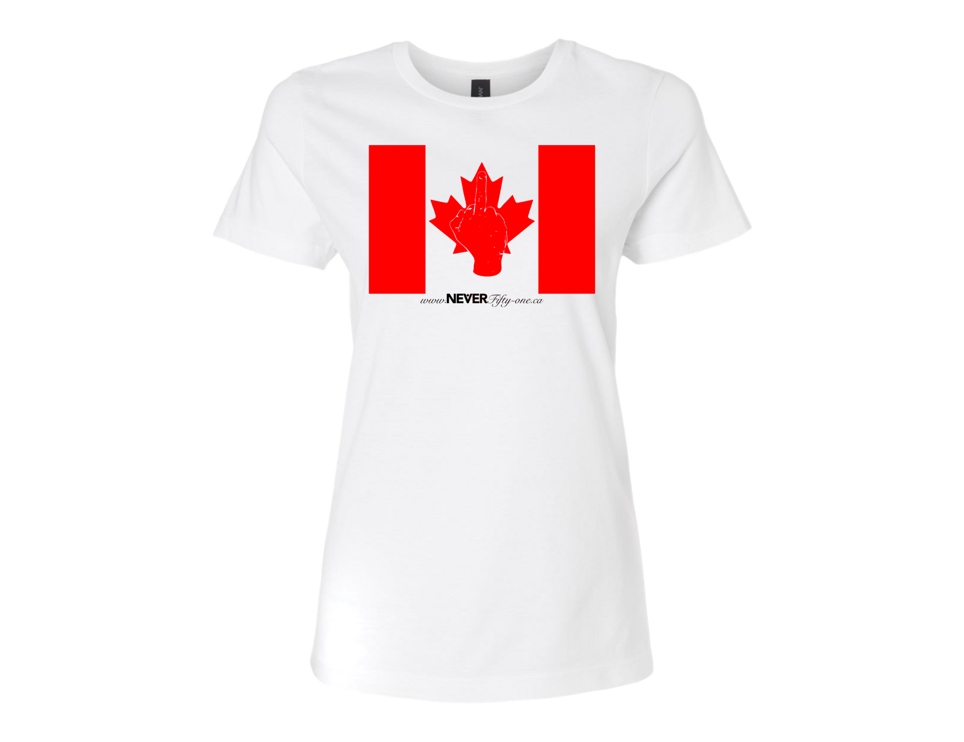 Womens NEVER Fifty-one Flag T-Shirt White Canadian Made (Premium)